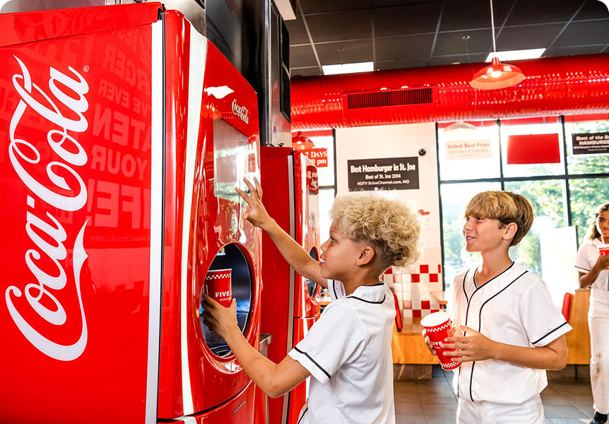 Complete your Five Guys meal with a crisp, cold beverage. We proudly serve Coca-Cola and Dr Pepper products